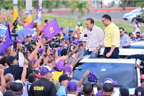 El líder de la oposición encabeza este recorrido junto al dos veces presidente de la República, Danilo Medina; el candidato a alcalde de este municipio, Luis Alberto y la candidata a senadora, Cristina Lizardo.