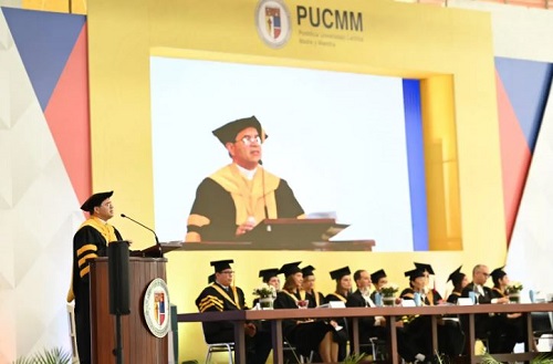 El reverendo padre Secilio Espinal, rector de la PUCMM, destacó en su discurso los esfuerzos de la universidad por mantener la excelencia académica. Subrayó, además, un logro notable: el incremento del 10% en la matrícula estudiantil durante el cuatrimestre de enero a abril, marcando así un crecimiento histórico en la universidad para este periodo.