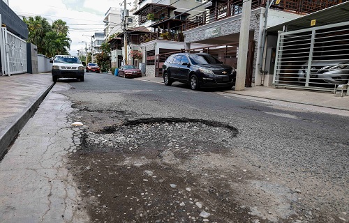 Próximo a la esquina de la Albizu Campos con Winston Arnaud se han formado hoyos en los que caen los vehículos, afectando el tren delantero y amortiguadores. Cuando llueve, los hoyos se llenan de agua.