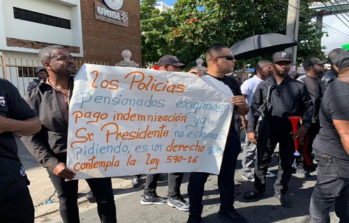 SANTO DOMINGO.- Grupos de policías y militares retirados protestan desde la avenida 27 de Febrero con destino al Palacio de la Policía Nacional en reclamo aumento salarial y otras reivindicaciones.