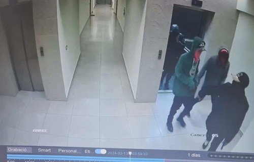 La administración compartió fotografías y vídeos tomadas de las cámaras del parqueo y los pasillos de las áreas por la que entraron los asaltantes a los apartamentos.