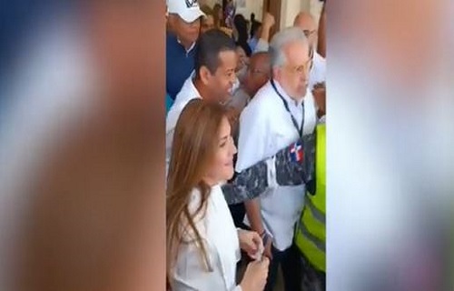 Carolina Mejía estuvo acompañada del Director General de Aduanas, Eduardo Sanz Lovatón, Alberto Atallah y otros altos dirigentes del PRM.