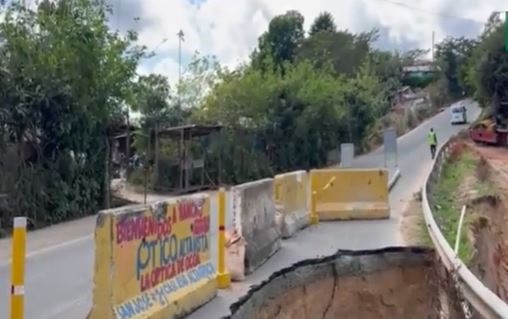 Lugareños y usuarios de esa vía dicen que la situación inició la semana pasada con un pequeño hoyo. Ese cráter hoy ocupa un carril completo.