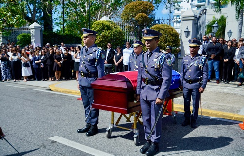 En la funeraria, se destacan los honores rendidos por el Ministerio de Interior y Policía, del cual Almeyda fuera incumbente; igual que de oficiales de la Policía Nacional, quienes entregaron la Bandera Nacional a la viuda, Josefina Pérez Gaviño.