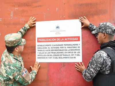 SANTO DOMINGO.- El Ministerio de Trabajo, en el marco de sus atribuciones legales, dispuso la paralización de actividades en 11 empresas ubicadas en la Zona Franca Riosur de Santo Domingo Este, ante «el peligro inminente» para la seguridad y salud de sus trabajadores.