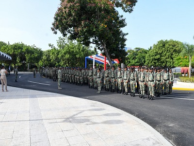 SANTO DOMINGO.- Desde 6:30 de la mañana, decenas de militares se presentaron al Teatro Nacional Eduardo Brito para realizar pruebas de la presentación y seguridad militar que habrá el 16 de agosto, día de la toma de posición del segundo mandato del presidente Luis Abinader.