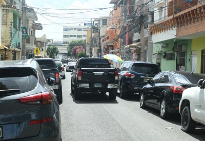 SANTO DOMINGO.- El tránsito en las principales calles y avenidas del Distrito Nacional se encuentra en caos debido al doble parqueo de vehículos.