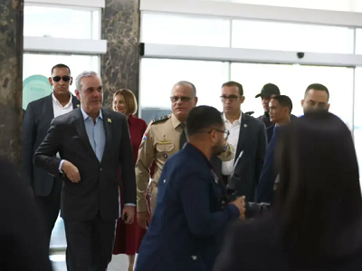 A su llegada el mandatario fue recibido por el ministro de Defensa, teniente general Carlos Fernández Onofre; el nuevo director de Migración, el alcalde general Luis Rafael Lee Ballester, además de los viceministros de Defensa para asuntos Navales, Militares y Aéreos.