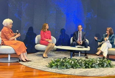En el panel le acompañó de manera virtual Julio María Sanguinetti, Ex Presidente de Uruguay; la señora Gisela Sánchez, Presidente Ejecutiva, Banco Centroamericano de Integración Económica, bajo la conducción de la periodista internacional, Glenda Umaña.