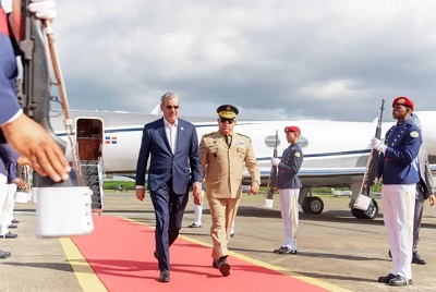 El jefe de Estado regresó por la base aérea de San Isidro y fue recibido por el viceministro para Asuntos Militares del Ministerio de Defensa, Mayor General Miguel Ángel Rubio Báez, (ERD, que estuvo en representación del ministro de Defensa, teniente general Carlos Antonio Fernández Onofre; el comandante general de la Fuerza Aérea, piloto general mayor, Floreal T. Suárez Martínez, de la Guardia Presidencial, general de brigada Guillermo Caro Cruz y del Regimiento de la Guardia de Honor, coronel Luis. R. Herrera Almonte.