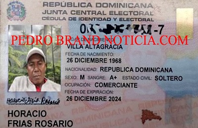 PEDRO BRAND.- Fue hallado sin vida la tarde de este martes en su habitación por un aparente paro cardíaco, el señor Horacio Frías Rosario, quien el próximo 26 de este mes cumpliría 56 años de edad.