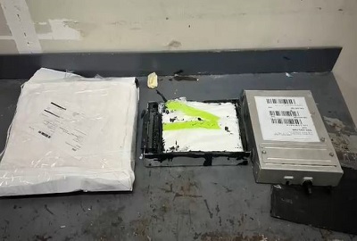 En otra labor de inspección, en el correo, los agentes coordinados por el fiscal, localizaron otro paquete, conteniendo dentro una computadora automotriz, en cuyo interior se incautó una lámina de la droga, con un peso de 105 gramos.