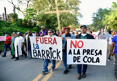Religiosos y políticos apoyan a comunitarios en marcha contra presa de la Barrick Gold