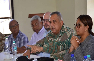 En el encuentro también estuvieron el diputado Carlos Morillo; general José Rodríguez, director del Cuerpo Especializado de Seguridad Fronteriza; general Luis A. Coronado Abreu, supervisor de la construcción de la verja perimetral fronteriza; Octavio Landolfi, director de Comercio Interno del Ministerio de Industria y Comercio, entre otros.