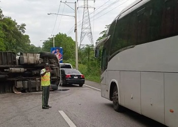 La patana volcó en medio de la vía, lo que ha generado una gran congestión vehicular y un derrame de combustible tanto de la patana como de uno de los camiones.