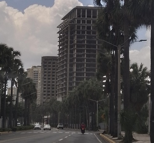 Es el caso de un edificio que lleva en construcción más de 30 años, ubicado en la initersección de las avenidas George Washington y Máximo Gómez, cerca de Cinema Centro Malecón.