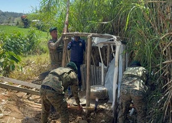LA VEGA.- Militares del Ejército de la República Dominicana y agentes de la Dirección General de Migración llevaron a cabo la destrucción de una letrina improvisada construida por haitianos en el municipio de Tireo, próximo a Constanza, en la provincia La Vega.