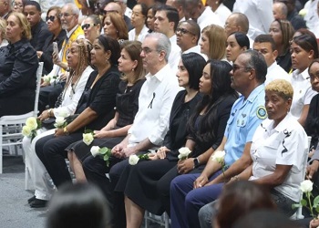 HAINA, SAN CRISTÓBAL.- En la mañana de hoy, el presidente Luis Abinader y la primera dama, Raquel Arbaje, encabezan un acto religioso en memoria de todos los fallecidos en Jet Set.