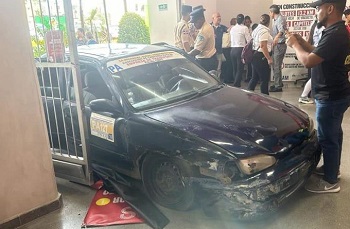 SANTIAGO.- Un vehículo perteneciente a la ruta de transporte urbano de Santiago perdió el control y se estrelló contra la terminal 1 del teleférico de Santiago, impactando la baranda y la puerta de acceso de la estación.