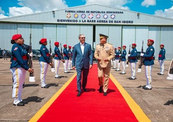 El mandatario partió a las 10:52 de la mañana desde la Base Aérea de San Isidro donde fue despedido por el ministro de Defensa, teniente general Carlos Antonio Fernández Onofre; el comandante de la Fuerza Aérea, mayor general piloto Floreal T. Suárez Martínez y los comandantes de la Guardia Presidencial, general de brigada Guillermo Caro Cruz y del Regimiento de la Guardia de Honor, teniente coronel Paula Fernández Jiménez.
