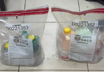 SANTO DOMINGO.- Agentes de la Dirección Nacional de Control de Drogas (DNCD) y miembros del Ministerio Público, incautaron 20 envases que simulaban ser champú y tratamiento para el cabello, llenos de cocaína líquida, durante operaciones de interdicción conjunta en el aeropuerto Internacional de las Américas, JFPG.