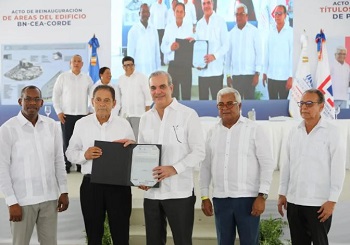 Durante el acto, también inauguró el remozamiento del edificio que alberga a Bienes Nacionales, el Consejo Estatal del Azúcar (CEA) y la Corporación Dominicana de Empresas Estatales (CORDE).