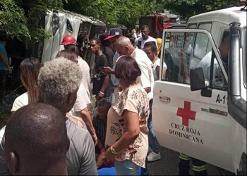 SANTO DOMINGO.- Un autobús de pasajeros se accidentó este domingo a la altura del kilómetro 40 de la autopista Duarte, con dirección hacia Santo Domingo.
