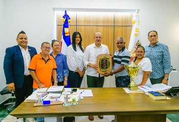 SANTIAGO.- El alcalde de Santiago, Ulises Rodríguez, y la directora de cultura, Miriam Cruz, recibieron a los ganadores del Desfile Nacional de Carnaval 2025 “Santiago es Leña y Carnaval” y “Diablos Tradicionales”