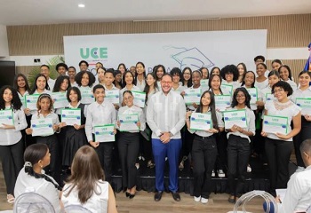 SANTO DOMINGO.- La Universidad Central del Este (UCE) entregó las becas del Programa UCE Excelencia, reconociendo el esfuerzo y dedicación de más de 50 jóvenes que culminaron el bachillerato con un índice académico sobresaliente de 95 puntos o más, quienes recibirán una beca del 100 %.
