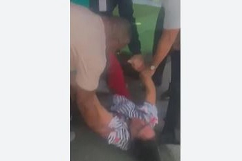 La exempleada quien se presentó hoy junto a otros compañeros de labor para reclamar el pago, se le observa intercambiar palabras con oficiales quienes tratan de impedir su paso y esta forcejea para ingresar y, es cuando pocos segundos después entra en estado de irritabilidad y gritos desmedidos ante su angustia.