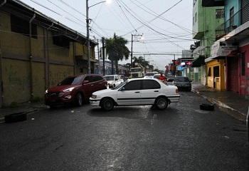 SANTO DOMINGO.- Un hombre colocó su vehículo en medio de la calle en búsqueda de prevenir que su residencia, y la de otros vecinos, se inunden por el agua acumulada tras las primeras lluvias de la tormenta Melisa.