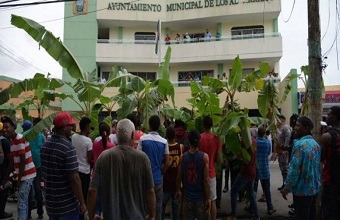 Los manifestantes hicieron una parada frente al Ayuntamiento Municipal, allí vociferaban consignas contra el actual alcalde, Junior Santos y la falta de atención en ese sentido.