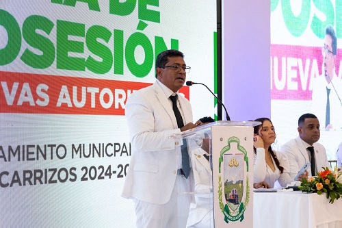 LOS ALCARRIZOS.- El alcalde electo del municipio Los Alcarrizos, Junior Santos, tomó posesión este miércoles de la alcaldía junto a los 15 regidores que fueron escogidos en las pasadas elecciones municipales de Febrero y adelantó que en sus primeros 100 días de gestión se concentrará en devolverle la higiene integral a la demarcación.