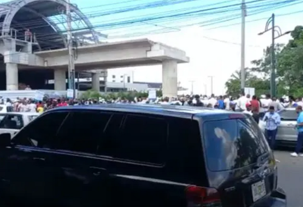 Los presentes en las inmediaciones de la estación en la que se espera que el presidente Abinader deje en funcionamiento el transporte llevan pancartas y vociferan vítores alusivos a la reelección del mandatario.